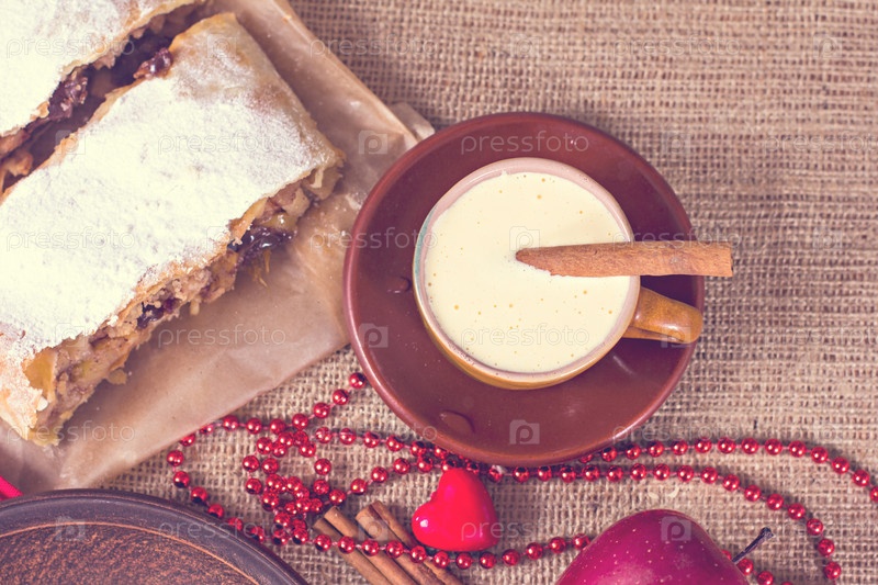 Яблочный штрудель и чашка кофе