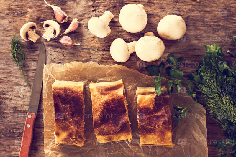 Самодельный рулет с курицей, грибами, сыром и овощами