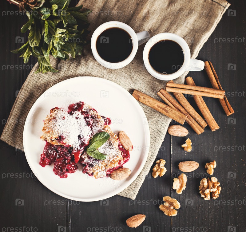 Вишневый пирог и чашка кофе