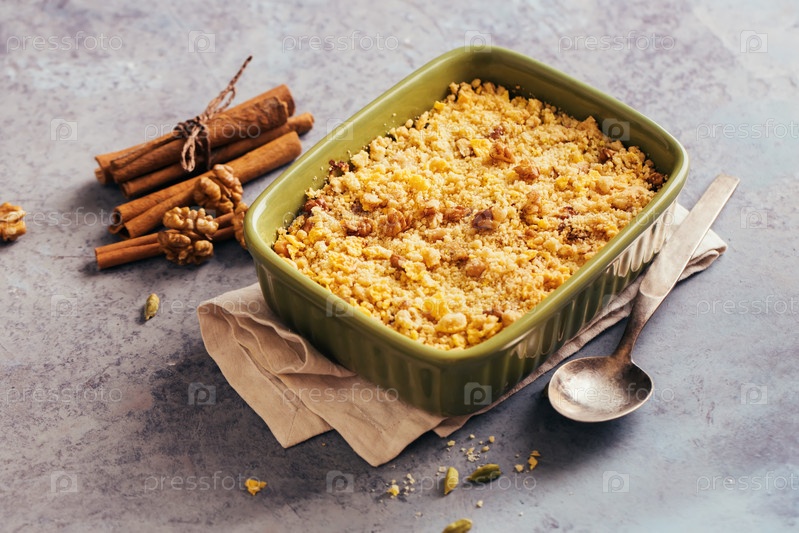 Яблочный десерт с корицей и грецкими орехами