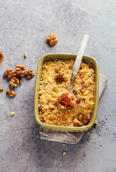 Яблочный десерт с корицей и грецкими орехами