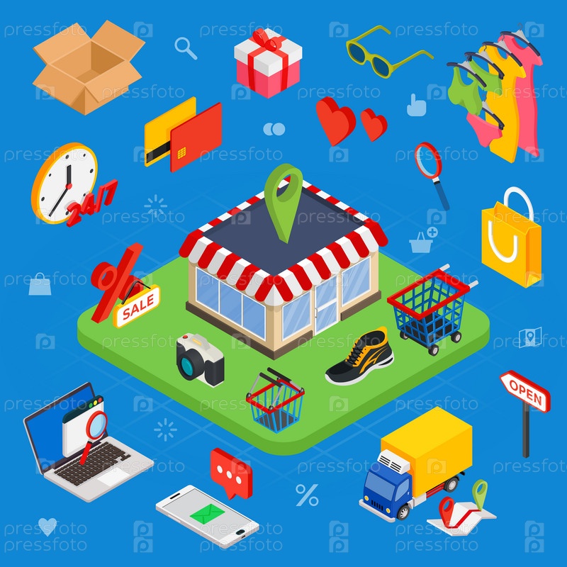 Изометрический набор иконок электронной коммерции