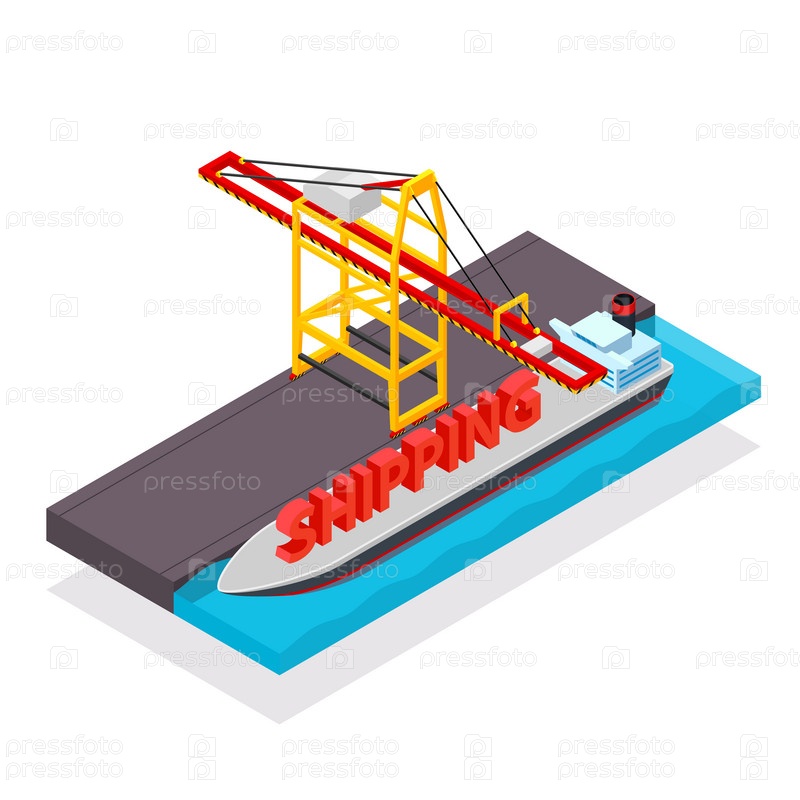Грузовой контейнерный корабль и кран