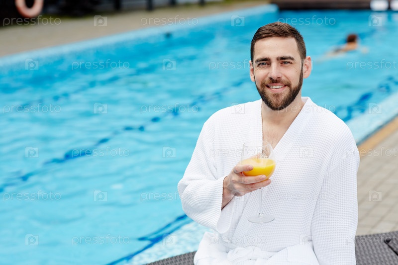 Мужчина у плавательного бассейна
