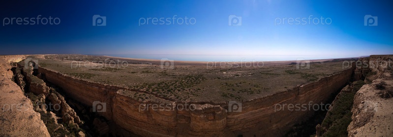 Аральское море от края плато Устюрта в Каракалпакстане, Узбекистан