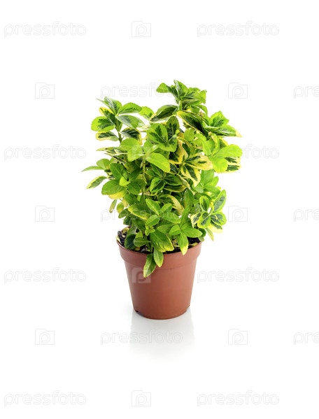 Растение Euonymus japonicus в горшке на белом фоне