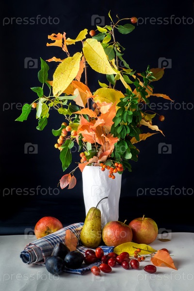 Осенний натюрморт с яблоками и кизилом