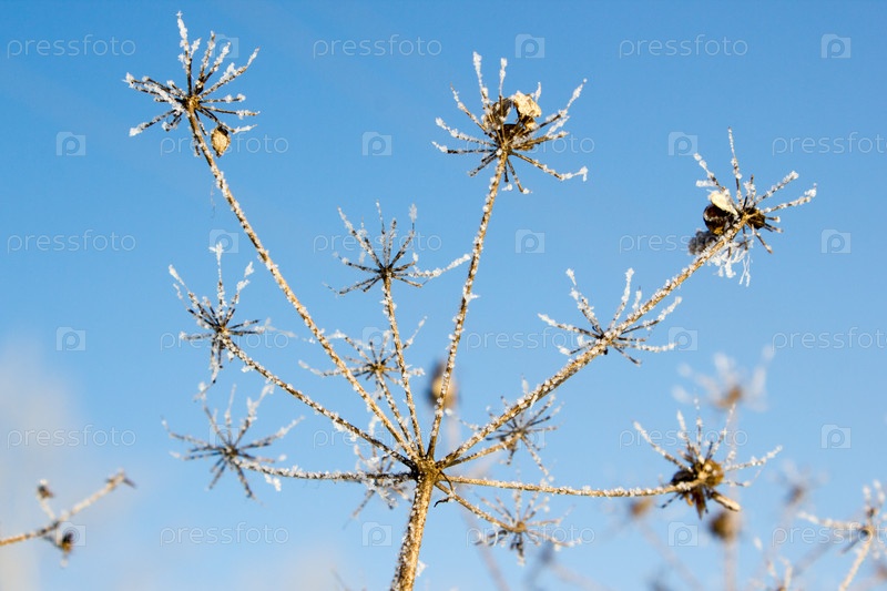 Ветви растений под снегом