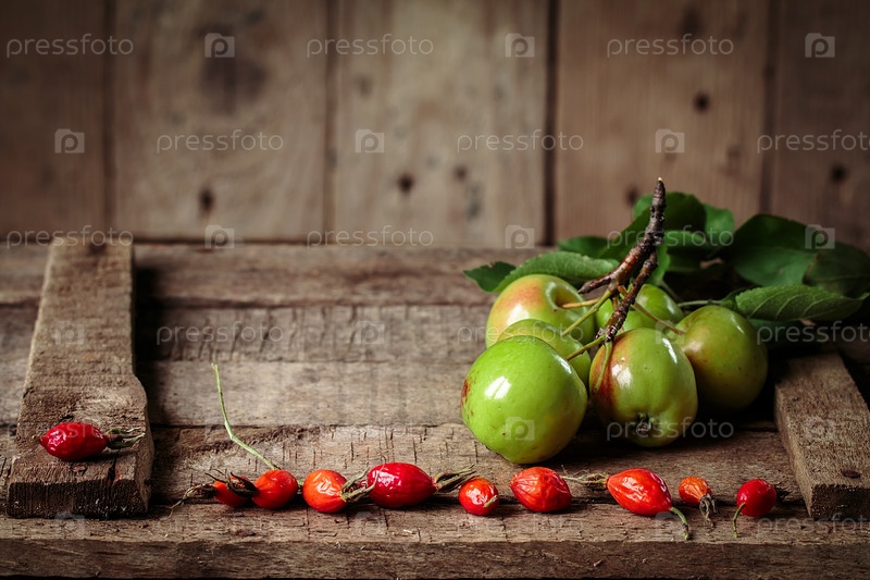 Зеленые яблоки на старой коробке