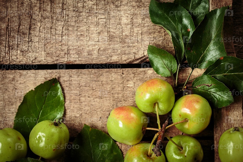 Свежие яблоки на старой коробке