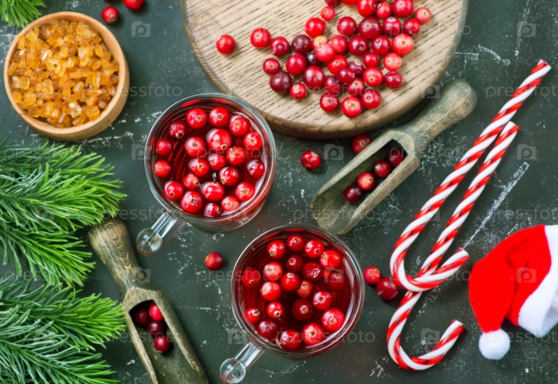 Клюквенный напиток и ягоды