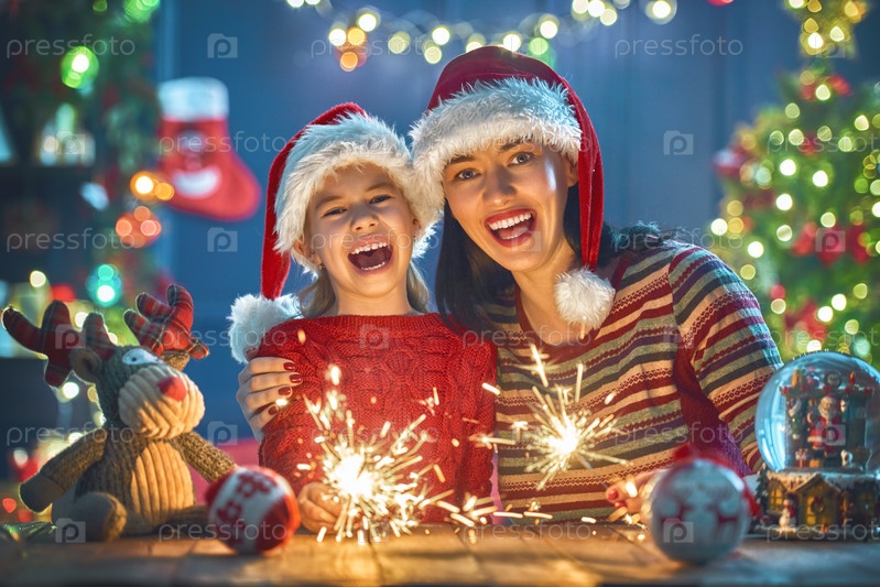 Мама и дочь с бенгальскими огнями