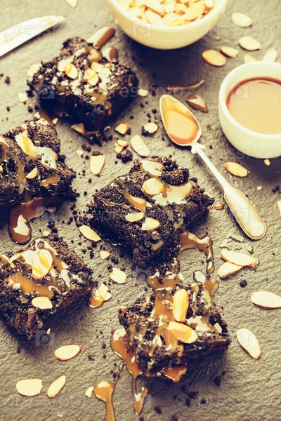 Куски шоколадного торта с карамелью