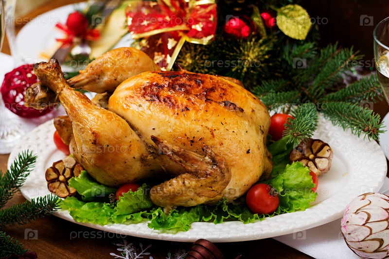 Рождественский стол индейкой