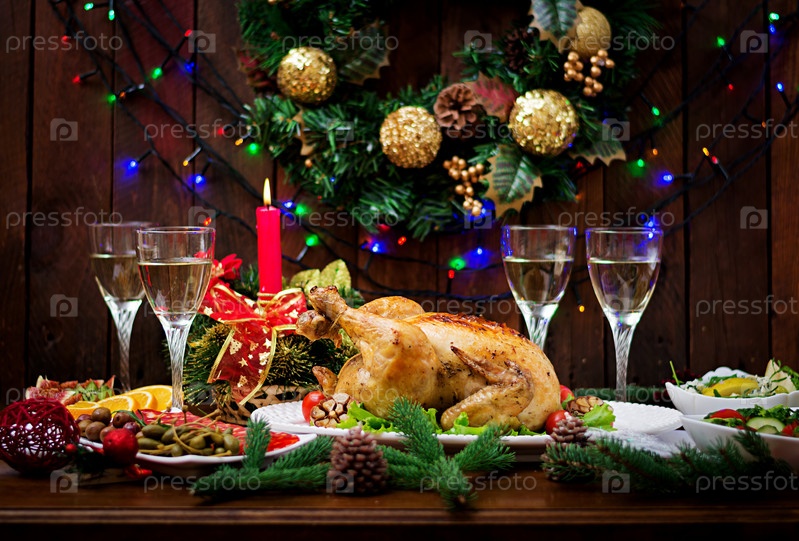 Рождественский стол индейкой