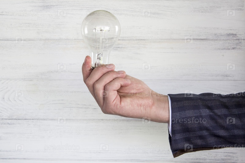 Электрическая лампочка в руке бизнесмена