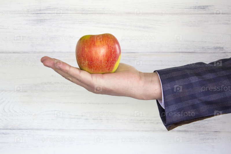 Красное яблоко в руке бизнесмена