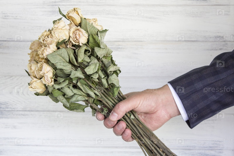 Сушеный букет из белых роз в руке бизнесмена