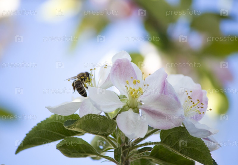 Пчела на яблоне