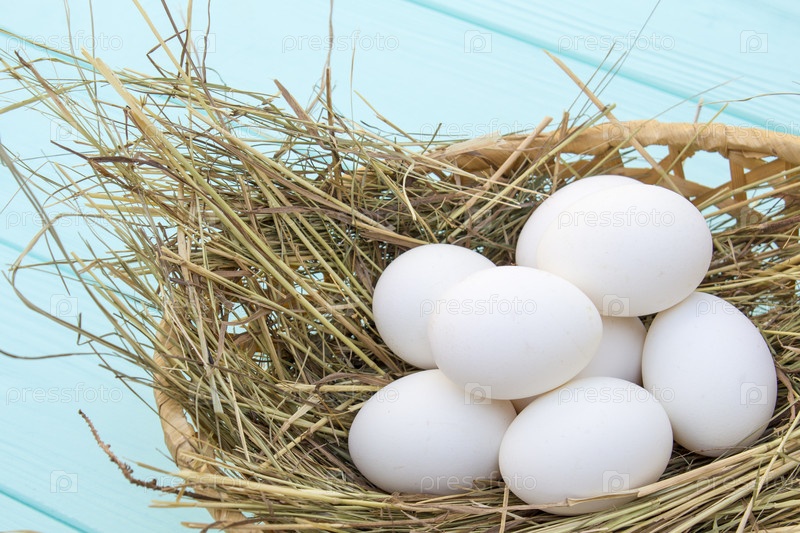 Куриные яйца в корзинке