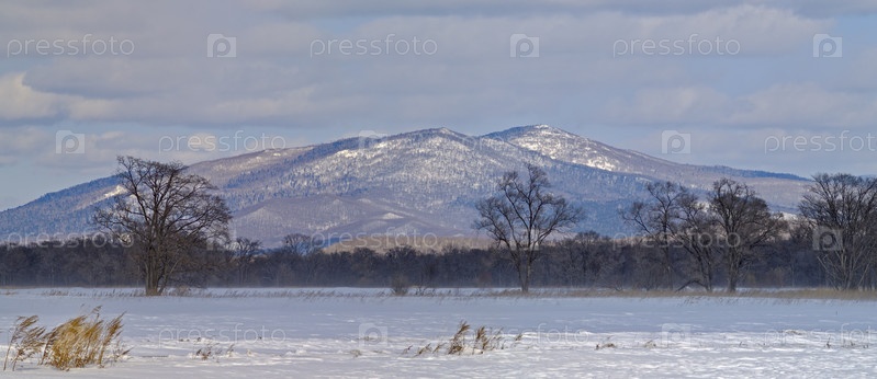 Панорама зимних гор Зимний пейзаж Сихотэ-Алинь, Россия