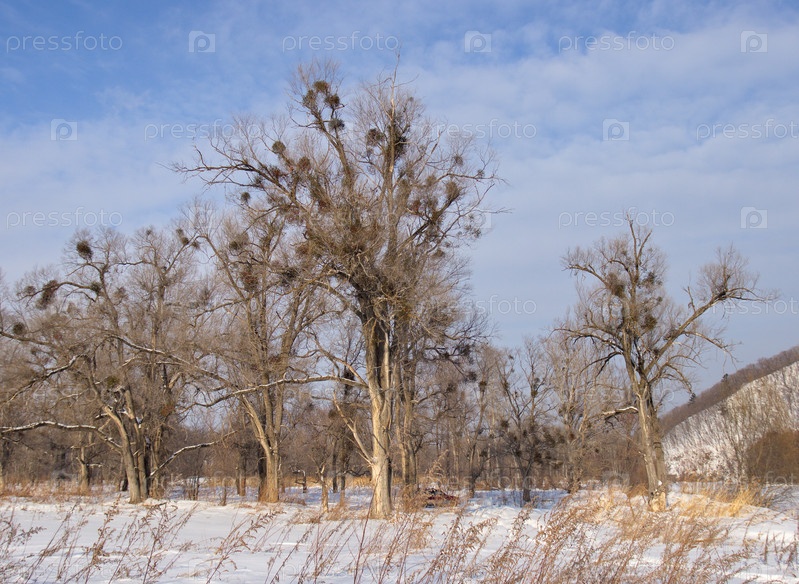 Зимний пейзаж с небольшой группой вязов