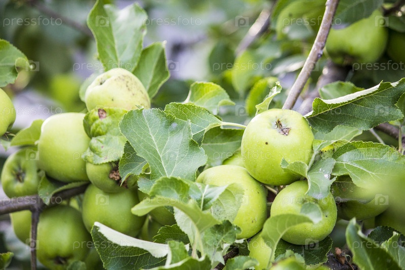 Зеленые яблоки на ветке