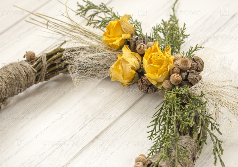 Венок из лозы с сухими розами