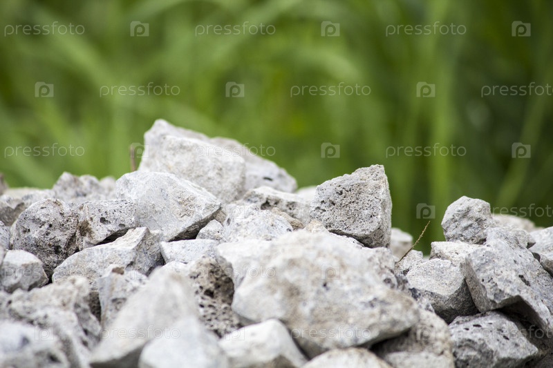 Куча камней на фоне травы