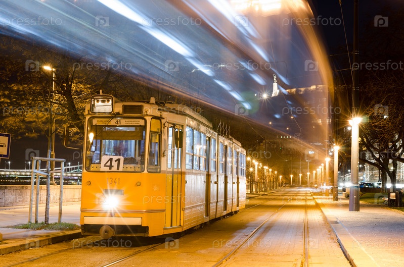 Старый трамвай в центре города Будапешт, Венгрия