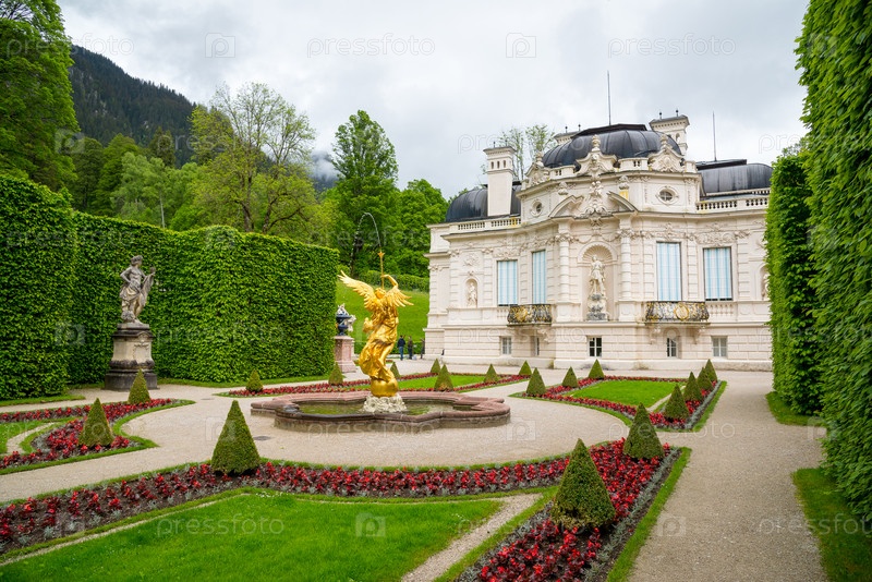 Линдерхоф дворец. Восточный вид с боковым садом. Бавария, Германия