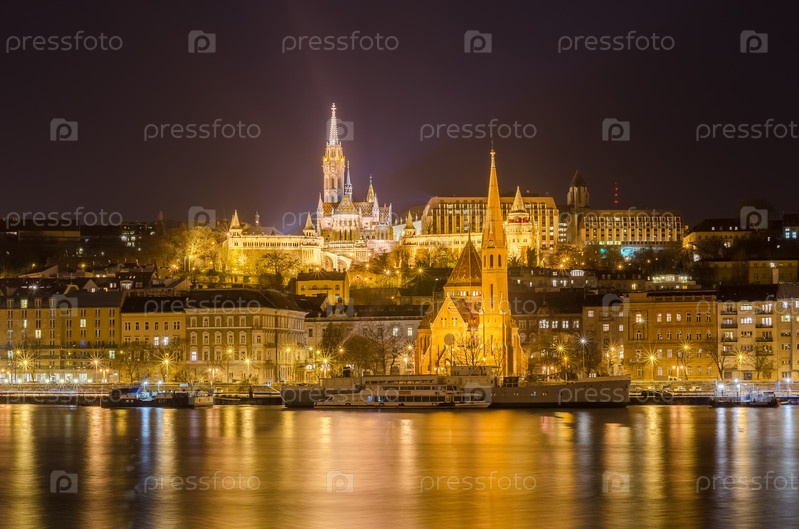 Будапешт ночью от Дуная, Венгрии