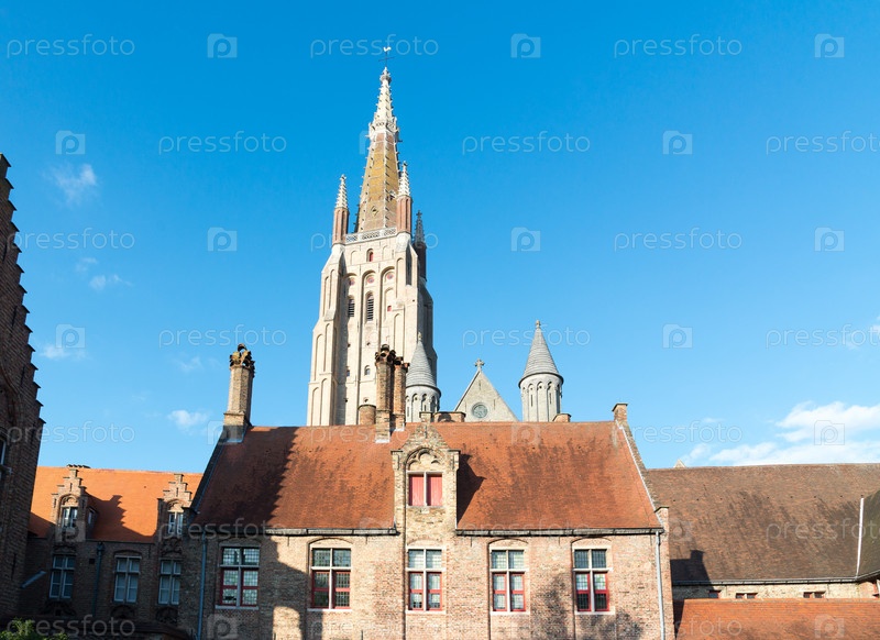Средневековая церковь Богоматери в Брюгге в солнечный день, Бельгия