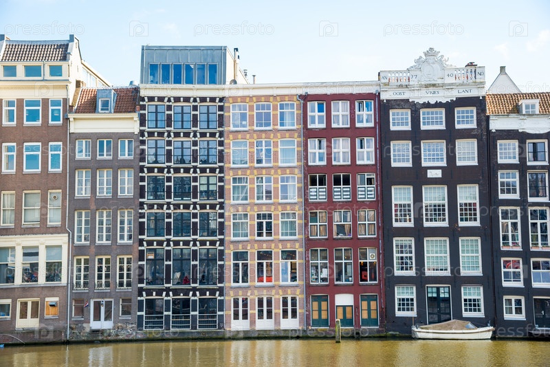 Традиционные старые здания в Амстердаме, Нидерланды