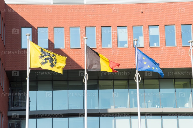 Флаги Бельгии, Европейского Союза и города Брюгге