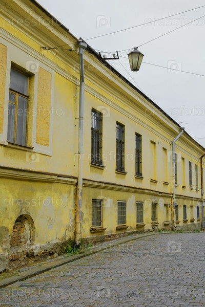 Жилой старый дом и улица в городе Выборг