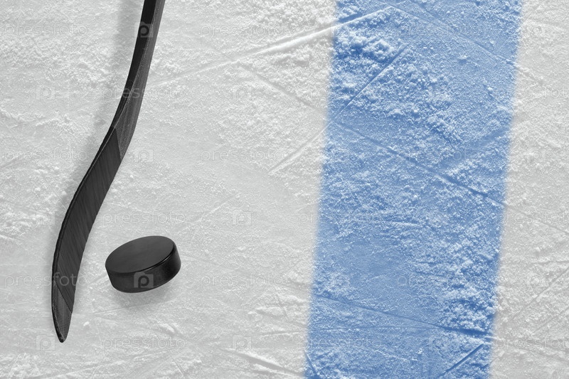 Хоккейная клюшка и шайба на льду