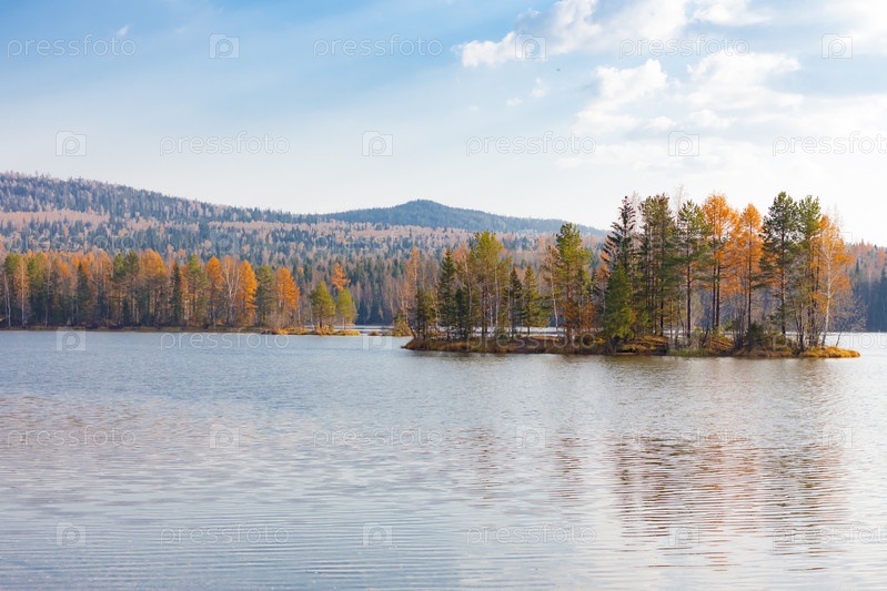 Осенний пейзаж с отражением в озере