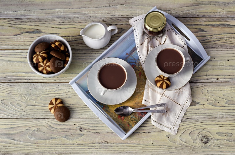 Чашки с горячим какао и печеньем