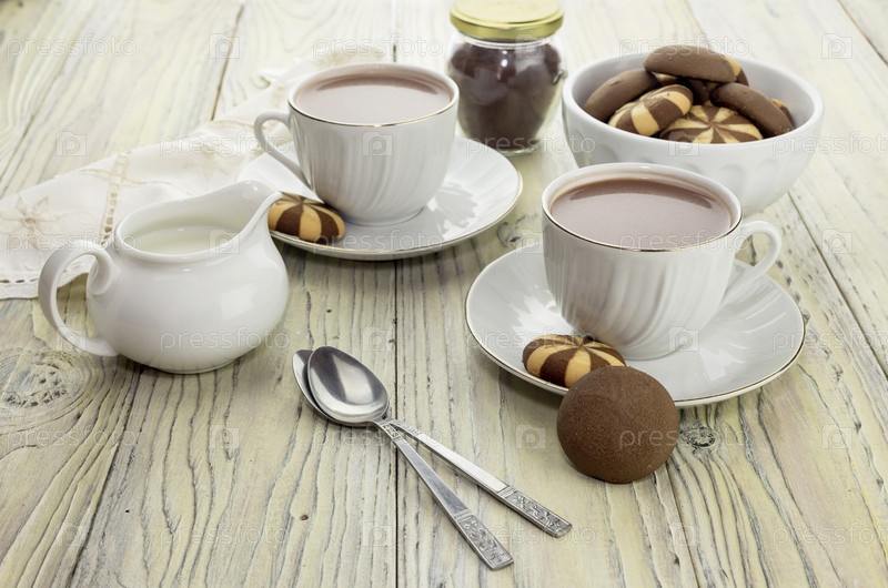 Чашки с горячим какао и печенье