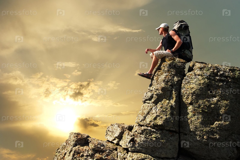 Турист на вершине горы