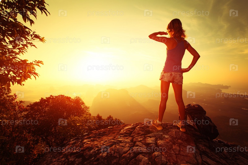 Турист на вершине горы