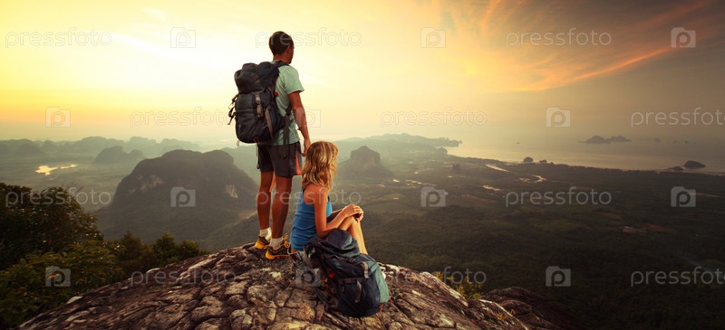 Туристы на вершине горы