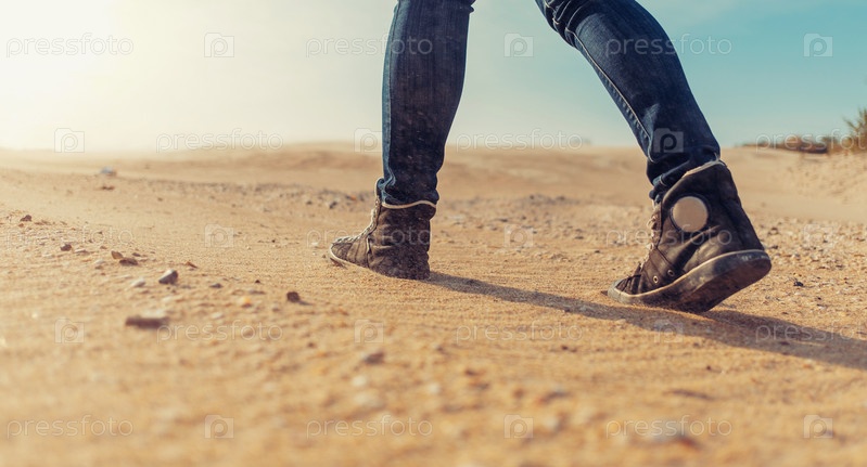 Женщина идет по песку