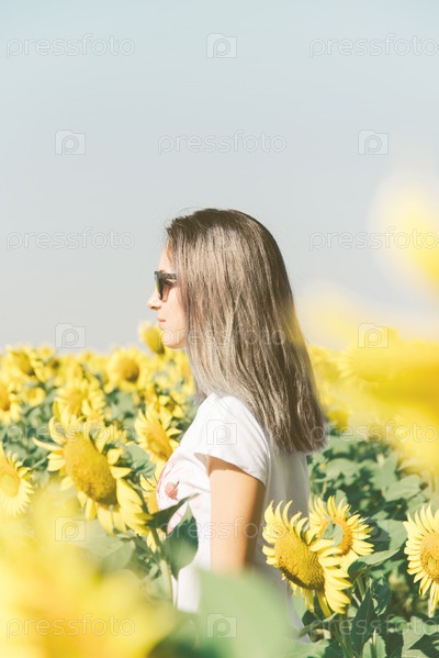 Женщина среди подсолнухов