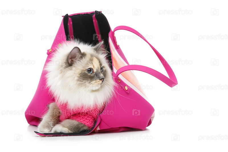 Красивая бирманская кошка в розовом свитере