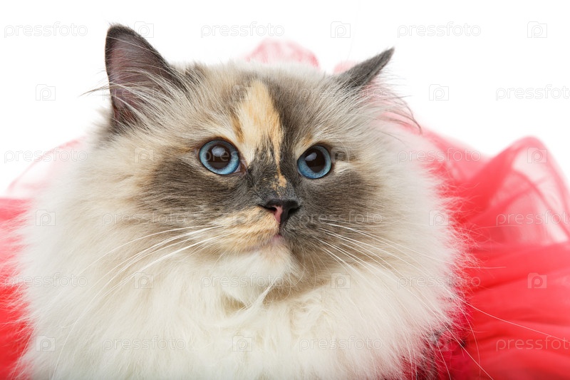 Красивая бирманская кошка в розовом платье
