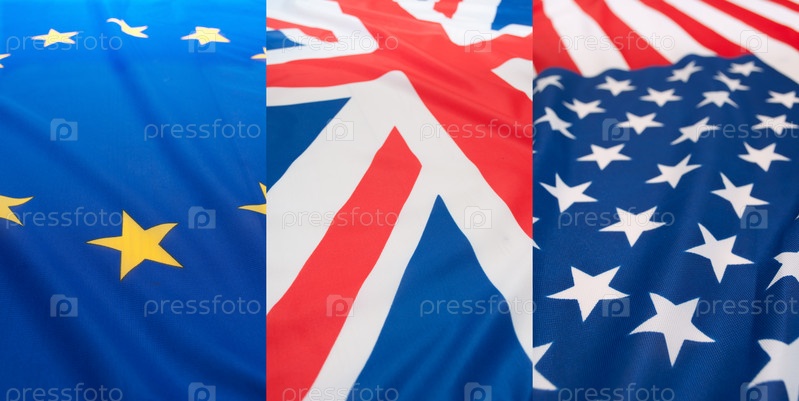 Национальные флаги Соединенных Штатов Америки, Великобритании и Европейского союза