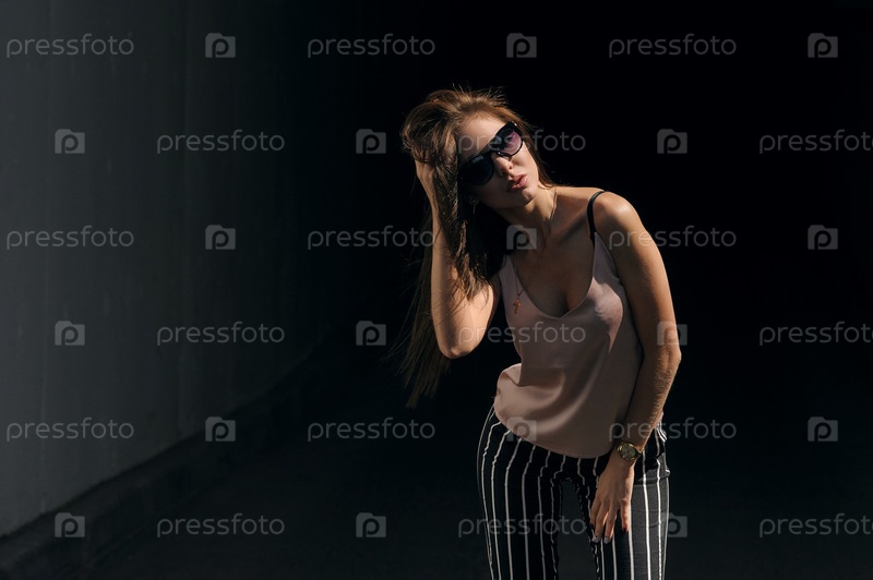 Красивая молодая женщина, стоя у входа в подземный гараж