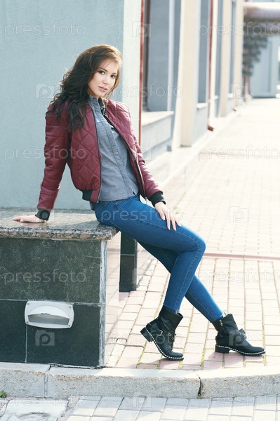 Молодая красивая стильная женщина в куртке